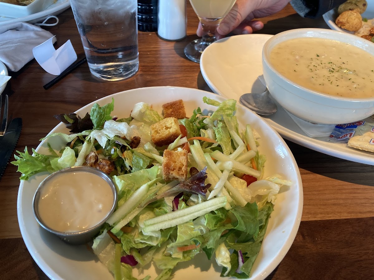 Friendly staff, great food! I've only ordered the cedar plank salmon so far, but it's one of the best salmon dishes I've ever had. Cooked perfectly. The pineapple salsa is delicious and the bourbon glaze puts this dish over the top! Our party ordered the trout and scampi and the chicken and shrimp pasta. All commented on how delicious everything was. Extremely affordable too. No wonder this place is always busy.