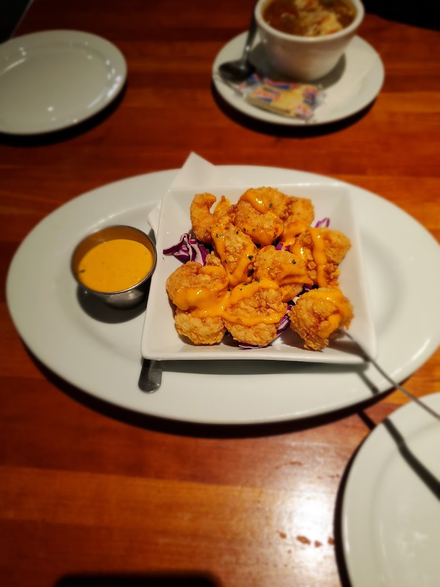 Fish Daddy’s was a nice surprise. It was our first time to eat here. Our waitress LIZ did a phenomenal job helping us with our order. She was very knowledgeable about the food and menu. I would highly recommend the Fresh North Atlantic Salmon (blackened) It was a great overall experience. The atmosphere was nice. Good food. Helpful staff Liz. Try the Firecracker shrimp if you like a little extra flavor with your shrimp. The salads were interesting as well.